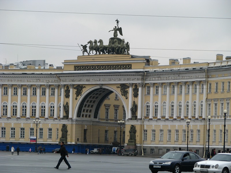В 1929 Карл Росси подарил миру жемчужину архитектурного искусства – Триумфальную арку, связавшую Главный штаб и здание министерств. Он изменил направление Б.Морской улицы, выведя ее на Дворцовую площадь в направлении центра Зимнего дворца. Здесь и возведена колоссальная Триумфальная арка